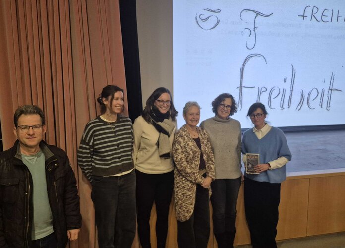 Unser jährlicher Beitrag zur Erinnerungskultur widmete sich der Widerstandskämpferin Sophie Scholl. Dafür war Dr. Maren Gottschalk zu Gast. Sie hat zwei Biografien über Sophie Scholl verfasst. Anhand vieler Fotos, Quellen und Bilder von Schauplätzen lernten die vier Klassen des MGTT ihr Leben und ihre Entwicklung kennen. Das letzte Bild zeigte, was Sophie auf ihre Urteilsverkündung der Todesstrafe geschrieben hat: Freiheit. Diese gälte es auch heute zu verteidigen, lautete das Credo von Maren Gottschalk. Dies ist auch über Zivilcourage im Alltag möglich und notwendig, ohne seinen Einsatz - wie Sophie Scholl - mit dem Leben zu bezahlen.
